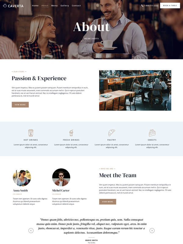 “Literally the best wp theme I ever worked with. The design is just stunning and works great out of the box. We could setup a whole catering website with minimal effort.