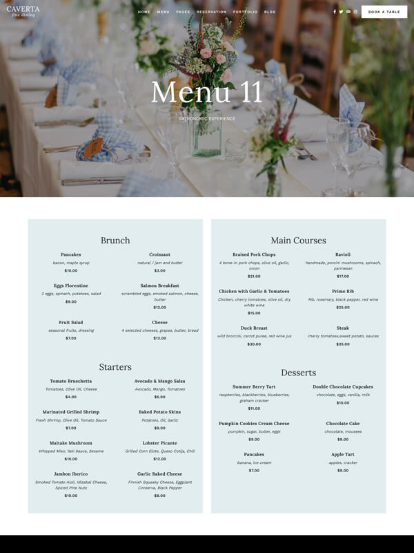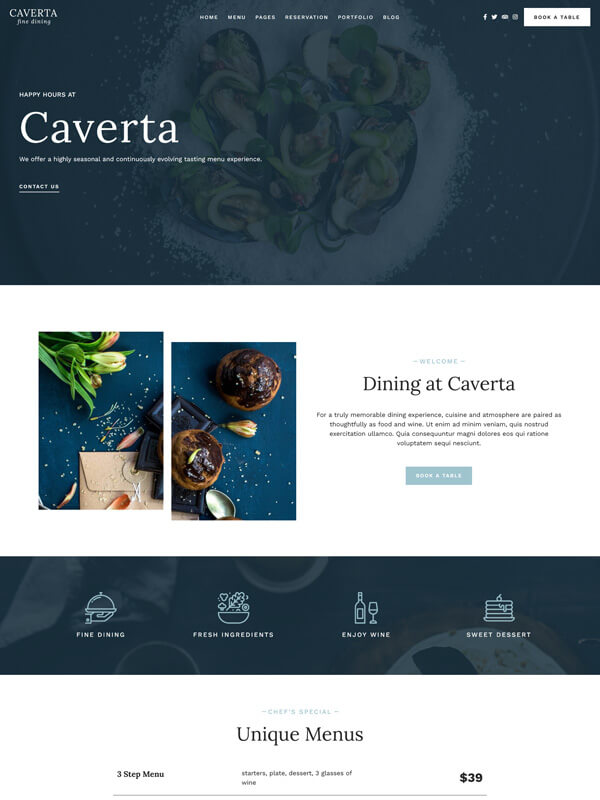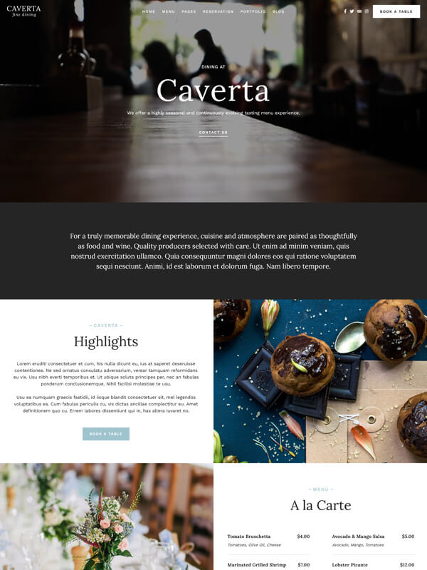 Get Caverta Restaurant Theme